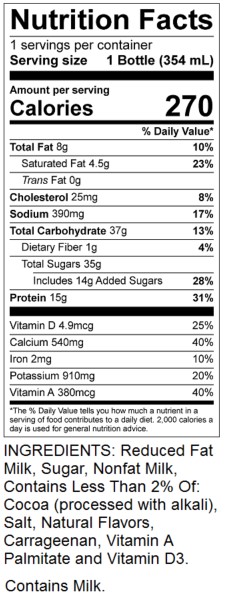 Chocolate is made with the most delicious 2% milk on the market and no artificial sweeteners.